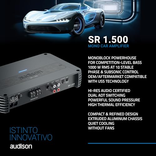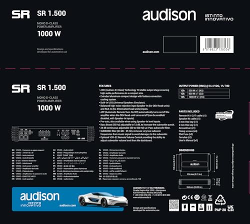 The Audison SR 1.500.2 is a D-Class mono amplifier delivering 1000W RMS at 1 ohm. Designed for subwoofer systems, it provides deep, powerful bass with precise control, ensuring impactful low-frequency reproduction for professional-quality car audio and SPL setups.