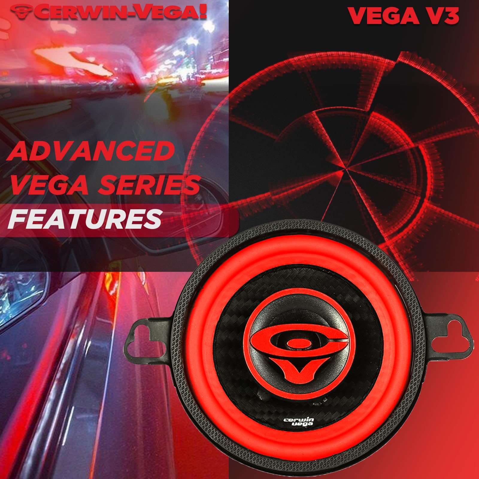 The Cerwin Vega V3 2025 Edition delivers premium-quality audio in a compact 3-inch coaxial design. Ideal for cars, trucks, and SUVs, these full-range speakers reproduce clear highs, detailed mids, and balanced lows, providing a rich and immersive in-vehicle listening experience.